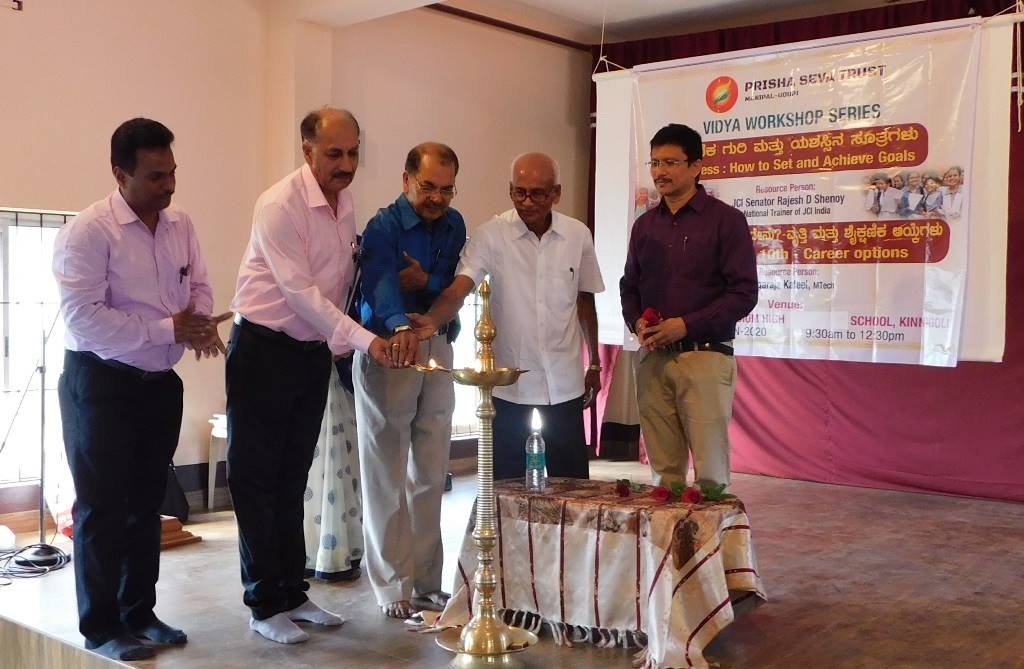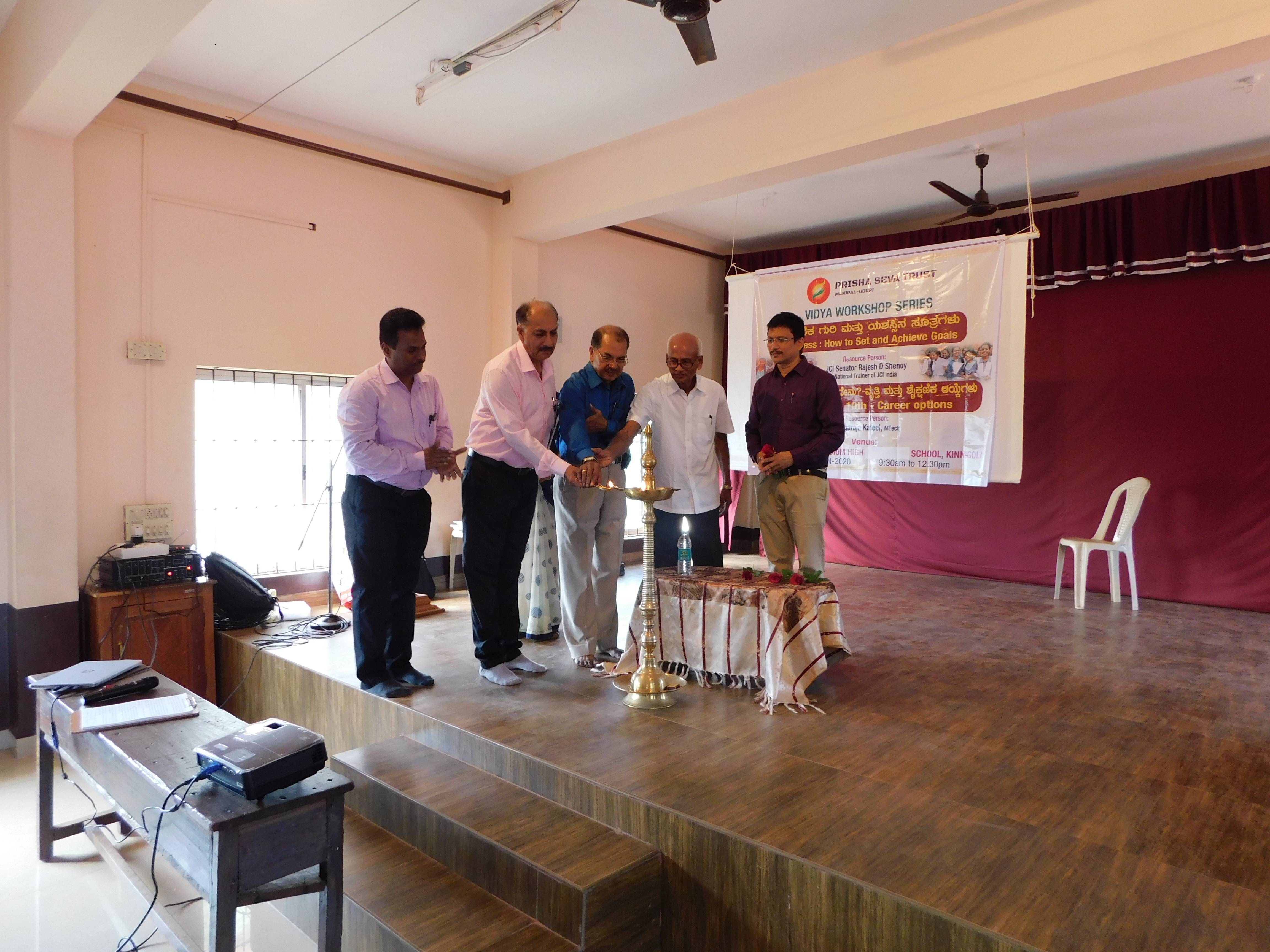 Secretary of school management committee Rot. Sathishchandra Hegde, President of Rotary Club Kinnigoly Rot. Michal Pinto, School Headmistress Sunitha G, President of the Trust D V Shettigar, Treasurer Vasudha Devi and Secretary Nagaraj Kateel were present on this occasion. Secretary of school Sathishchandra Hegde in his concluding remarks opined that such workshops are essential for the students of rural area and gives a better exposure to students both in terms of studies and career options. About 70 students of the school and 30 parents were the beneficiaries of these workshops. Headmistress Sunitha welcomed the gathering. The program commenced with a short prayer from students and was inaugurated by lighting the lamp by distinguished guests.