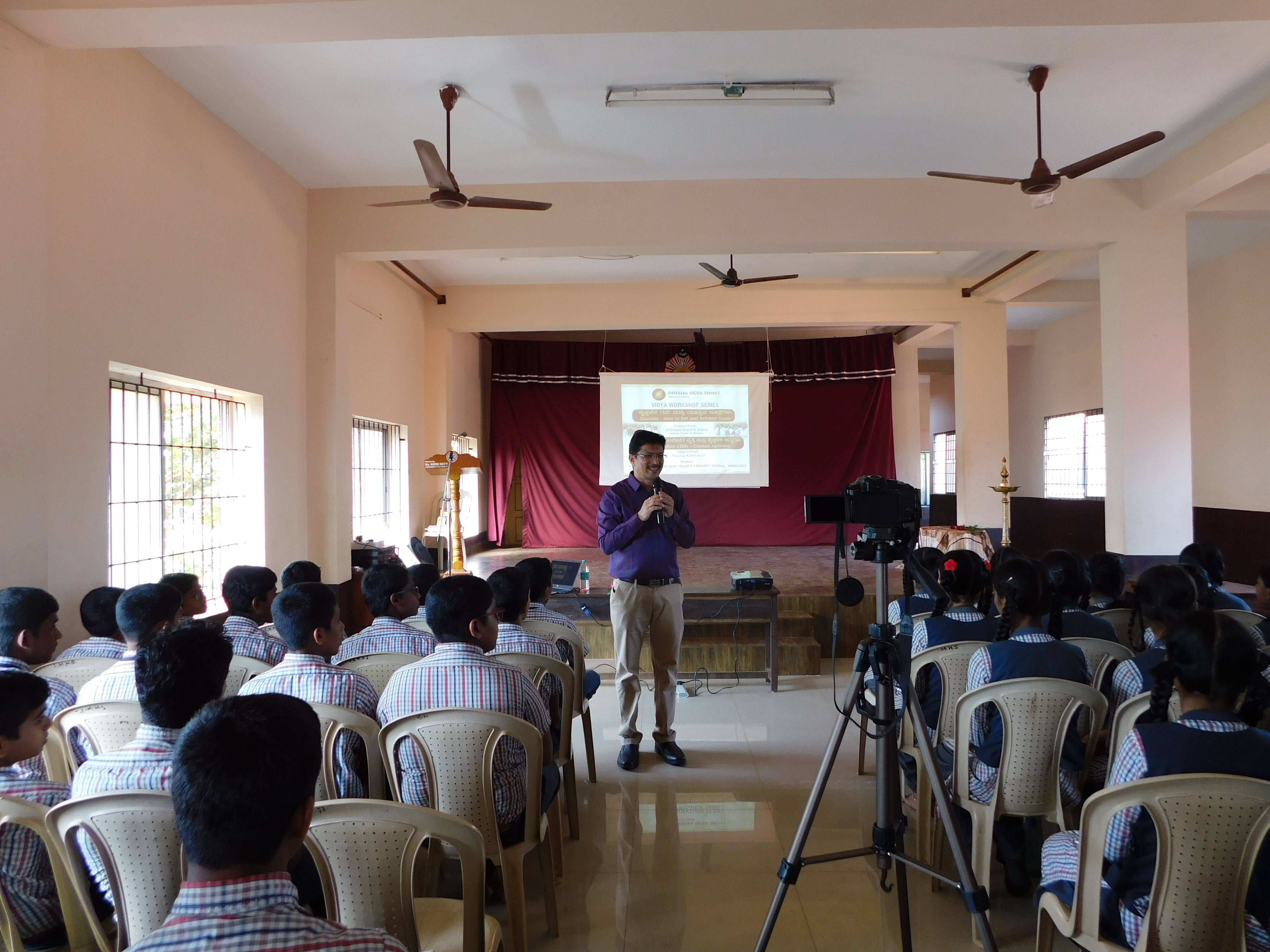 Rajesh Shenoy spoke about importance of Goal setting to achieve the desired results in studies as well as in life was extensively explained to the students through visual presentations and fun activities to make the learning process easier and more effective. Speaker also spoke about time management on daily basis and during exams, visualization of concepts and note taking methods. Rajesh concluded that proper planning, execution by students and guidance from teachers would lead towards better scores in exams.