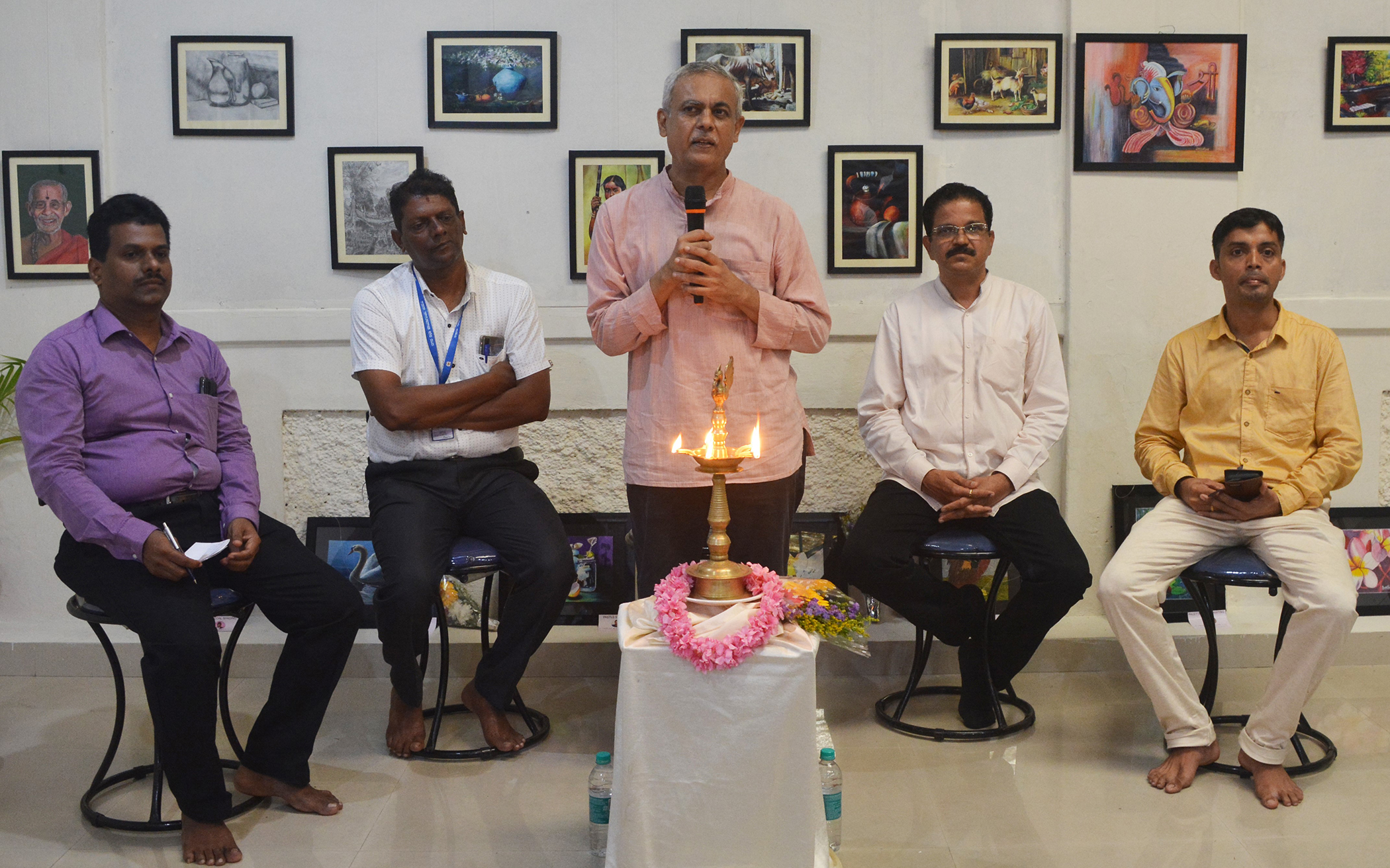 30 participants between the age group of 18 to 76 years were the beneficiaries of this program. Harish Saga, Director of Trivarna Arts conducted the training sessions. Basics of drawing with application to simple scenery and objects along with coloring were the topics in the morning session. Basics of pencil shading was the topic in the afternoon session. Participants took keen interest in both the sessions. Colorful landscape scenery in the morning session and an apple with pencil shading have emerged at the end of the workshop from each participant.