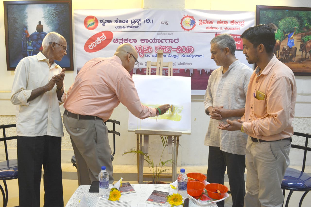 ಪ್ರಷಾ ಸೇವಾ ಟ್ರಸ್ಟ್ ಉಡುಪಿ - ಮಣಿಪಾಲ ಹಾಗೂ ತ್ರಿವರ್ಣ ಕಲಾಕೇಂದ್ರದ ಸಹಯೋಗದಲ್ಲಿ 20-10-2019 ರಂದು ಕಲಾಕೇಂದ್ರದಲ್ಲಿ 3೦ವರ್ಷಕ್ಕಿಂತ ಮೇಲ್ಪಟ್ಟ ಕಲ್ಲಾಸಕ್ತರಿಗಾಗಿ ಆಯೋಜಿಸಿದ್ದ ಉಚಿತ ಚಿತ್ರಕಲಾ ಕಾರ್ಯಾಗಾರವನ್ನು ಉದ್ಘಾಟಿಸಿ ಮಾತನಾಡಿದರು