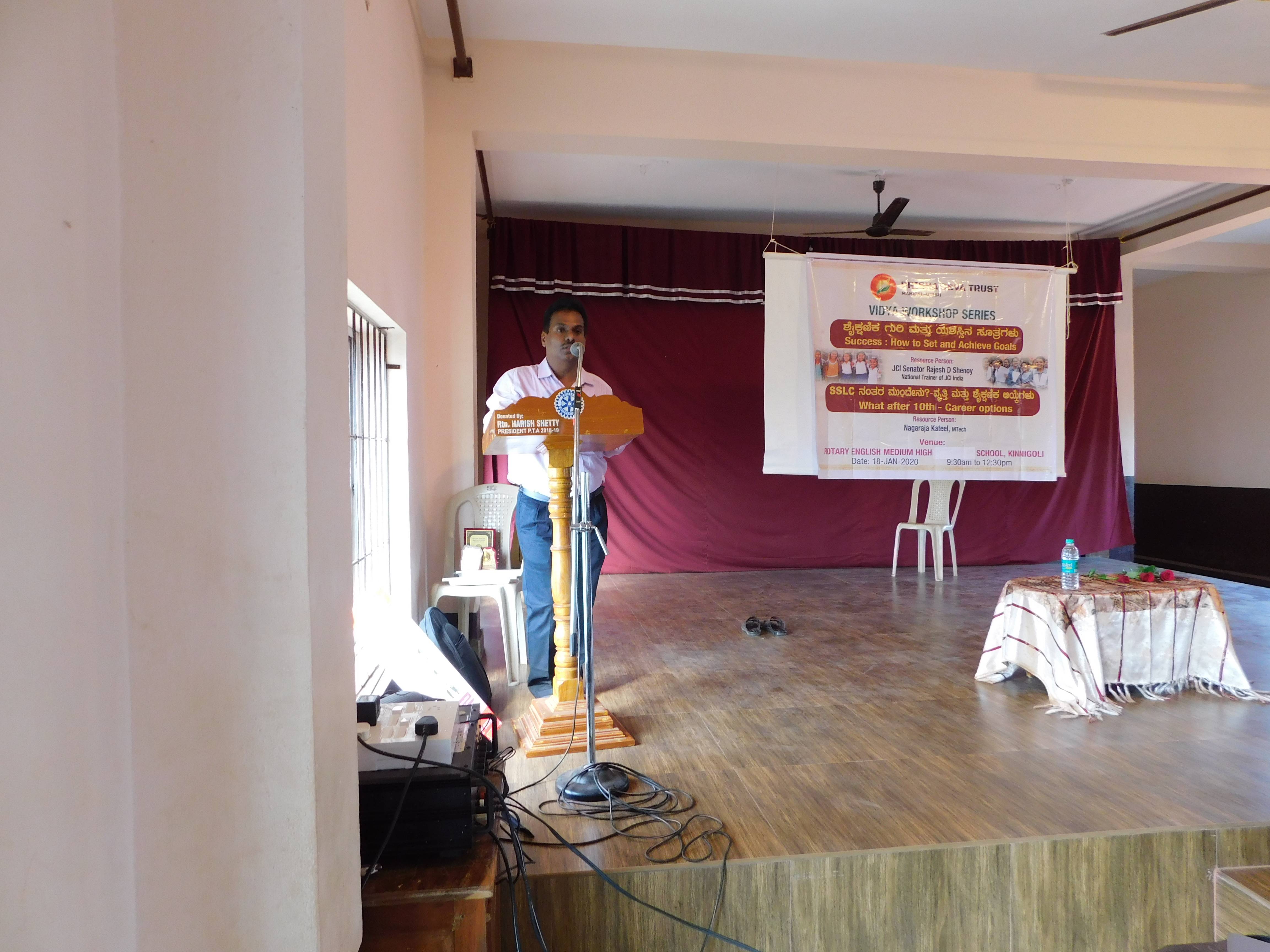 Prisha Seva Trust, Manipal-Udupi, organized a half day workshop on the topics “Success - How to Set and Achieve Goals” and “What after 10th - Career Options”, on 18th January, 2020 at Rotary English Medium High School, Kinnigoly for the students of Class 10. JCI National Trainer Rajesh Shenoy and Nagaraja Kateel were the resource persons.